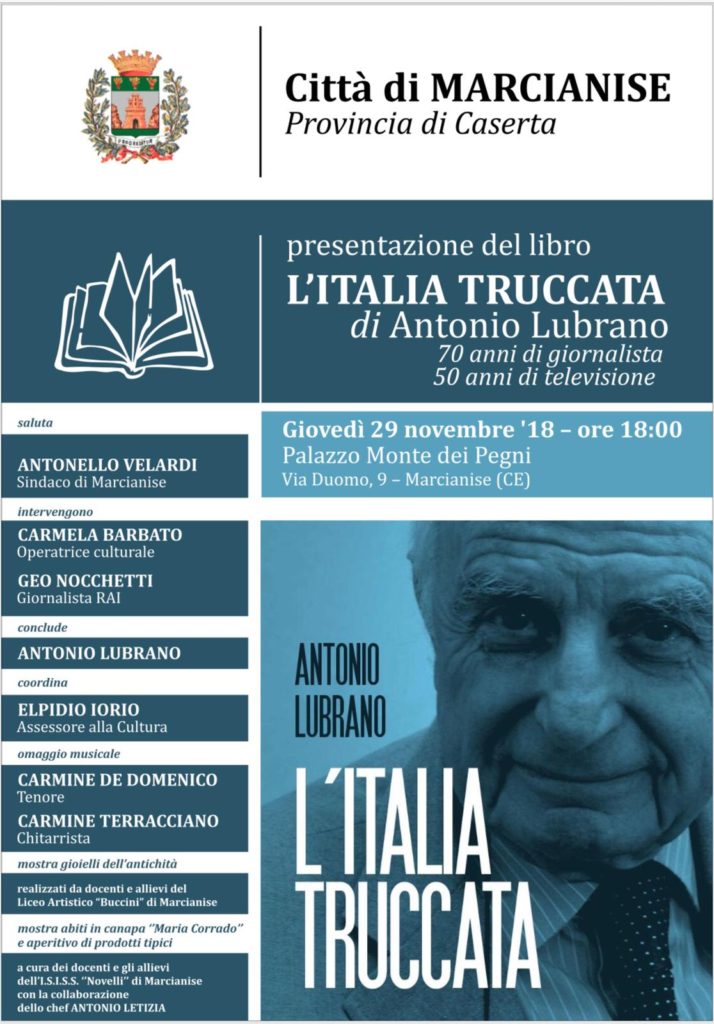Gli allievi del “Novelli” alla presentazione del libro “L’Italia truccata” di Antonio Lubrano A Marcianise, giovedì 29 novembre alle ore 18:00, presso il Palazzo Monte dei Pegni si terrà l’incontro con il noto giornalista e conduttore televisivo Antonio Lubrano che presenterà il suo ultimo libro “L’Italia truccata“. L’evento è promosso dall’Amministrazione comunaleContinua a leggere