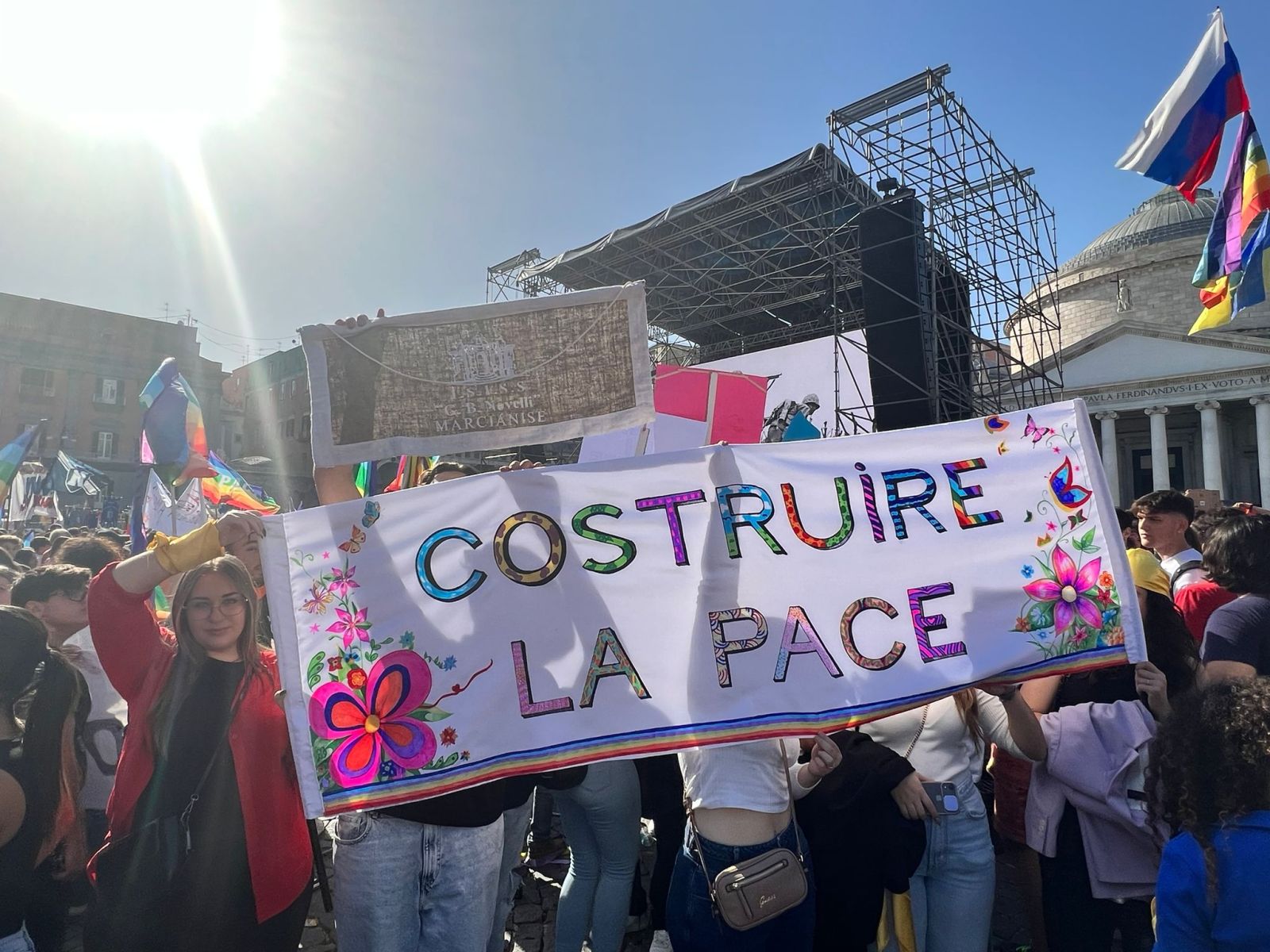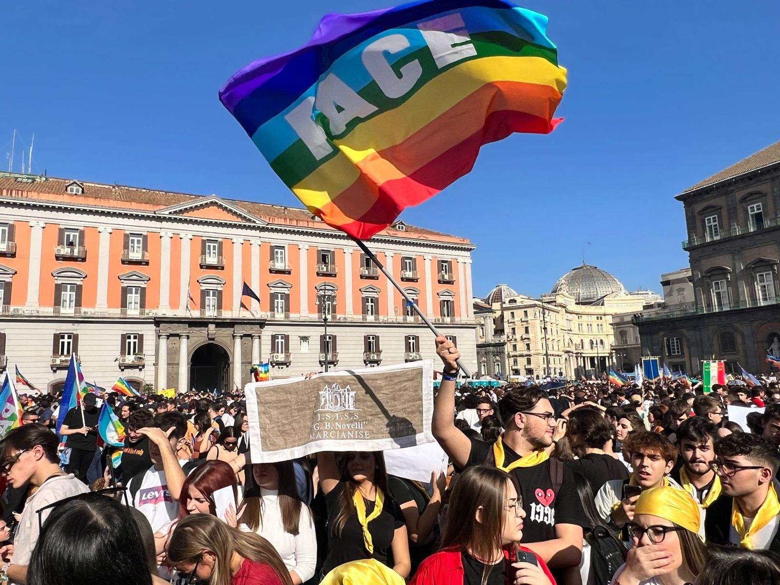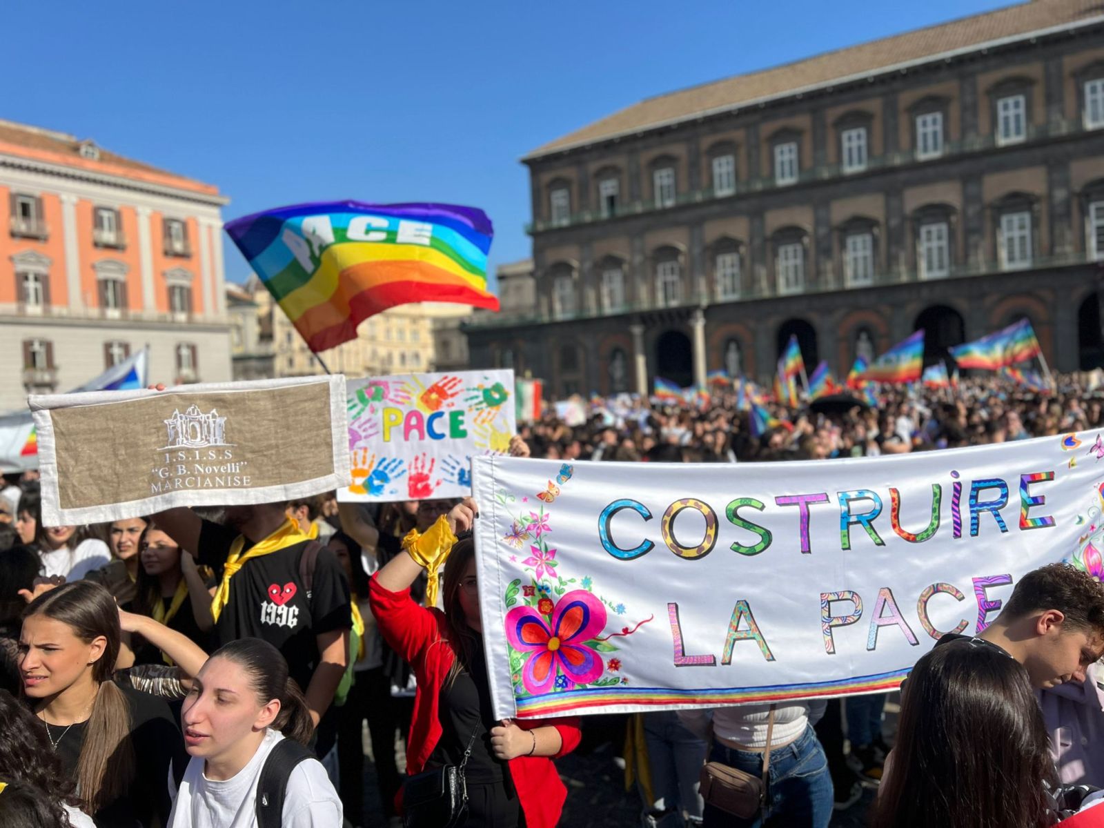 Venerdì 28 ottobre si è tenuta a Napoli la Manifestazione “COSTRUIRE LA PACE, FERMARE L’ATOMICA, PER UN CESSATE IL FUOCO IMMEDIATO”, organizzata dalla Giunta della Regione Campania, alla quale hanno partecipato gli studenti provenienti dagli Istituti Comprensivi e dalle Istituzioni Scolastiche Secondarie di I e II Grado di tutta la regione.